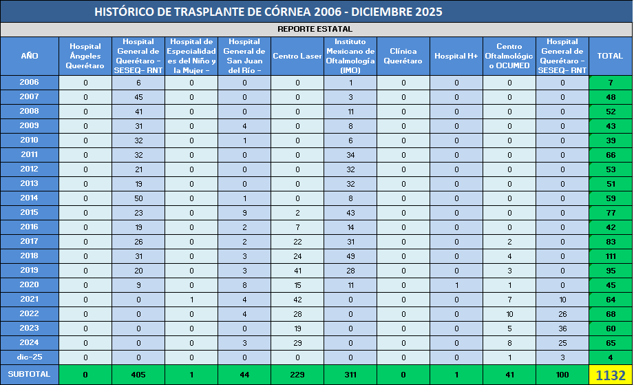 REPORTE HISTÓRICO DE TRASPLANTE CORNEAL 2006 - 2025