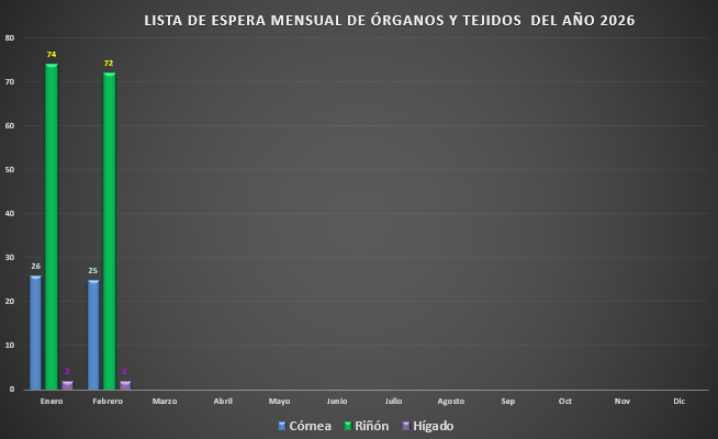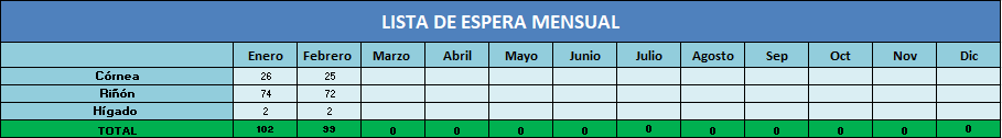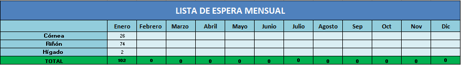 Presentamos la lista de espera mensual de órganos y tejidos, en el Estado de Querétaro.NOTA: La lista de espera no es acumulativa, aumenta si hay nuevos pacientes registrados para trasplante o dismunuye si se trasplanta a alguno de ellos, |